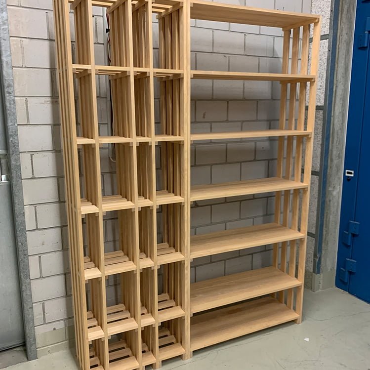 Nous avons pu concevoir et aménager une cave à vin selon les souhaits du client. Malheureusement, nous avons mal produit ou communiqué. Ainsi, deux étagères à vin sur mesure flambant neuves sont fraîchement arrivées à l’entrepôt et attendent maintenant celui qui réagira le plus rapidement.
