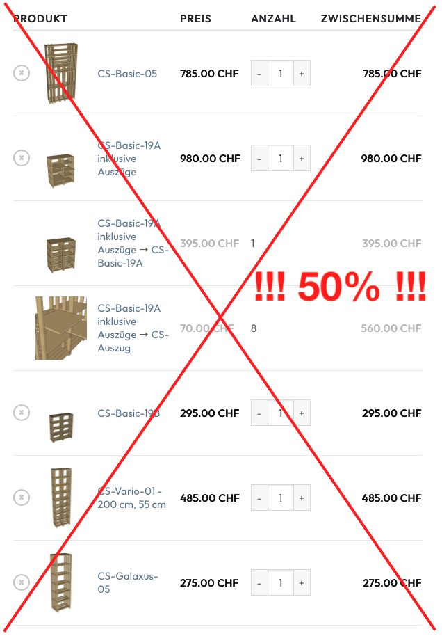 Wir haben aus einem Kundenprojekt einen ganzen Weinkeller zu vergeben. Bevor wir die Weinregale in andere Aufträge stecken, möchten wir ein Vorteilsangebot zu reduziertem Preis daraus machen.