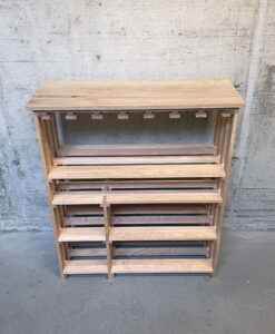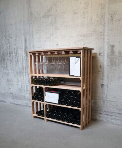 Die Fotos zeigen das Weinregal in Kombination mit einer Abdeckplatte in Altholz Braun Optik. Hier passen die selben Abdeckplatten, die auch auf das Modell CS-Basic-19B passen. Alle passenden Abdeckplatten in der Übersicht gibt es hier.